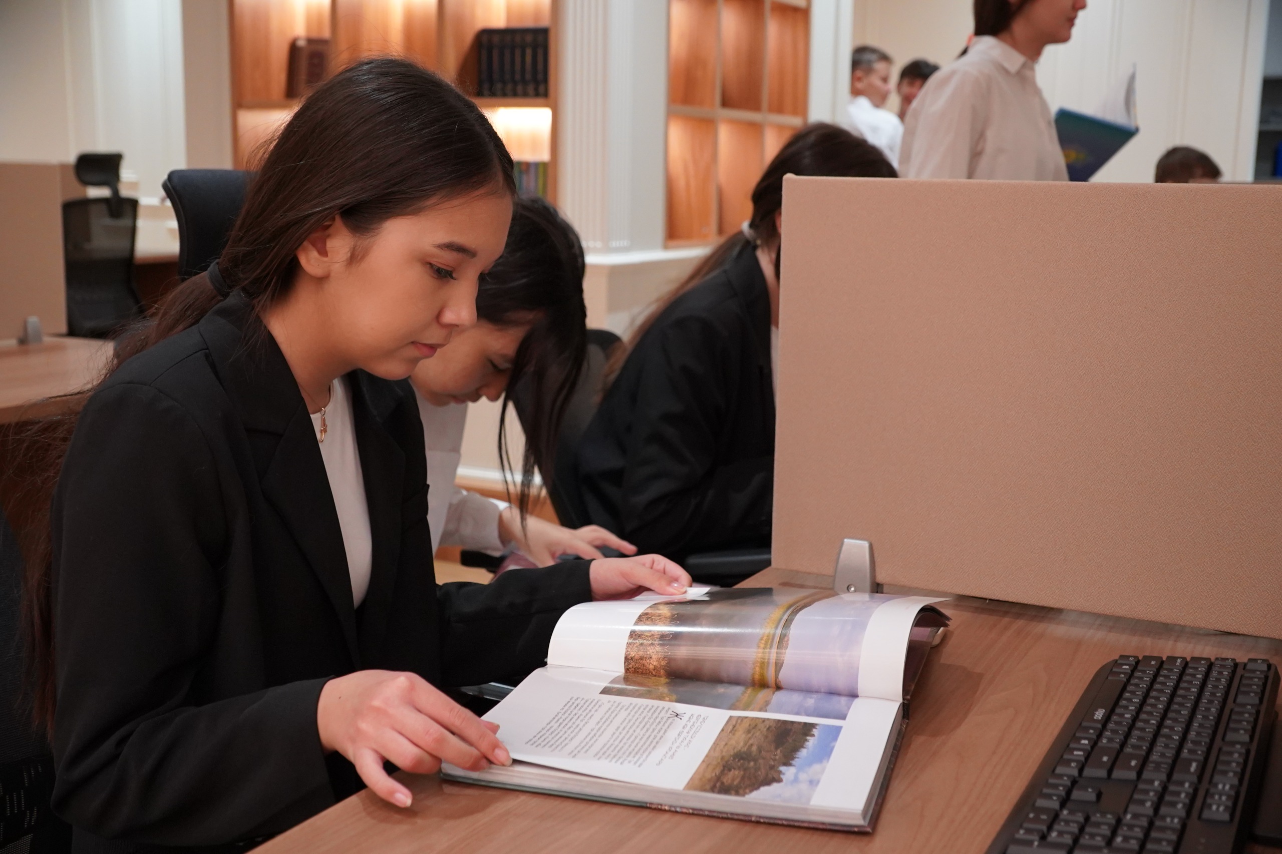 Во время специальной экскурсии школьники побывали в читальном зале, где почувствовали себя настоящими исследователями и смогли ознакомиться с цифровыми версиями архивных материалов. Ребята также посетили выставку, посвященную 30-летию Конституции Республики Казахстан.