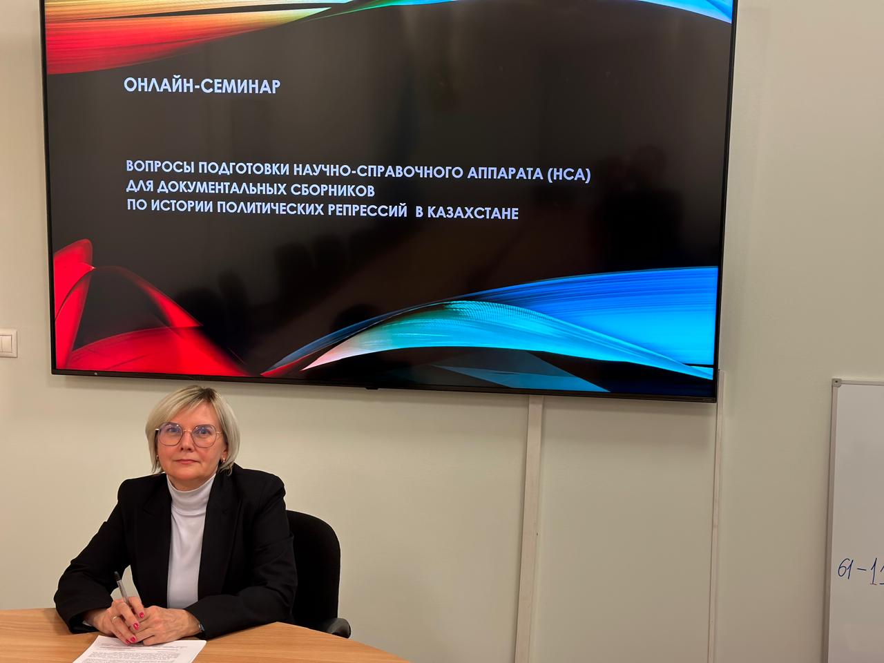 Сегодня, 15 ноября Архивом Президента, для работников архивных учреждений, занимающихся научно-исследовательской работой, был проведен семинар по актуальным вопросам подготовки научно-справочного аппарата (НСА) для историко-документальных сборников. Спикером семинара выступила к.и.н., старший научный сотрудник Центра прикладных и научных проектов Архива Е.С. Сыздыкова. Благодаря организации семинара в онлайн формате, к его работе подключились порядка 90 человек, 70% которых представители республиканских, областных, городских и районных архивных учреждений страны. Как отметил спикер, научно-справочный аппарат к документальным изданиям – это определенный результат археографического исследования, который дает возможность исследователю, историку, читателю ориентироваться в публикуемых документах. От того, как составлен научно-справочный аппарат издания, в значительной мере зависит эффективность использования документальной публикации. На семинаре были предложены способы и приемы, а также даны рекомендации по составлению НСА, основанные на опыте спикера и его коллег при подготовке Архивом Президента сборников документов по истории политических репрессий 20-50 гг. прошлого века. По завершению состоялся активный диалог между спикером и участниками, которые выразили пожелания в адрес руководства Архива сделать такой обмен опытом и мнениями регулярными.