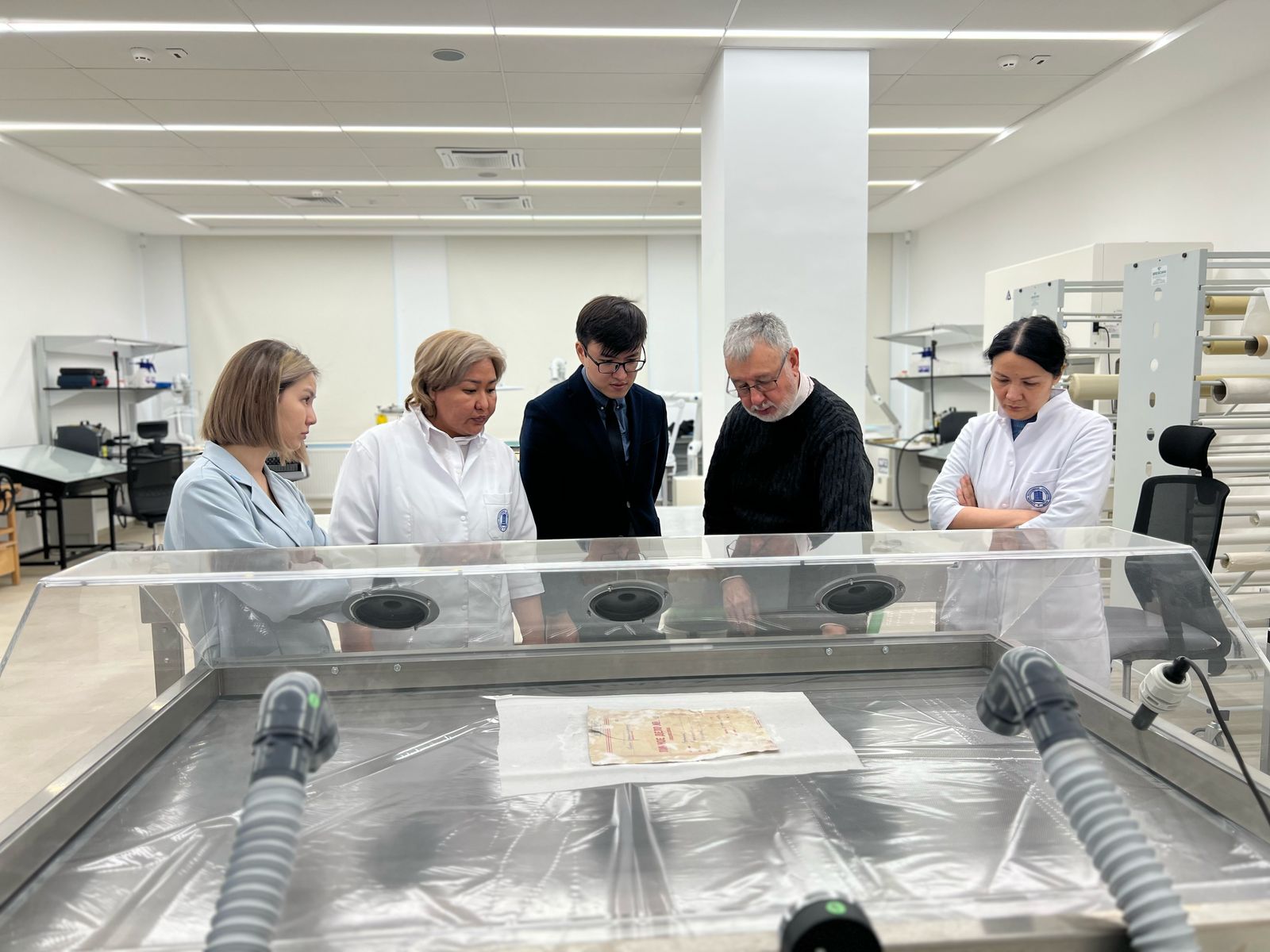 В Астане сотрудники Архива Президента Республики Казахстан проходят интенсивное обучение по работе с более чем 50 единицами новейшего оборудования, предназначенного для очистки, реставрации и оцифровки архивных документов. Для проведения тренинга в столицу прибыл представитель итальянской компании Bresciani — Витторио Бришани, который поделился опытом и знаниями с казахстанскими архивистами. Современное оборудование, соответствующее мировым стандартам, было закуплено в Италии после переезда Архива Президента РК из Алматы в Астану. По словам специалистов, использование передовых технологий позволит повысить эффективность работы лаборатории и обеспечить долгосрочную сохранность ценных архивных материалов. В ходе обучения сотрудники Архива осваивают работу с оборудованием, которое применяется на ключевых этапах обработки документов: • Дезинфекция: специализированные установки для уничтожения микроорганизмов, противогрибковые комплексы и бактерицидные лампы, предотвращающие разрушение бумаги. • Подготовка и очистка: вакуумные столы, паровые карандаши и другие инструменты для деликатного удаления загрязнений.