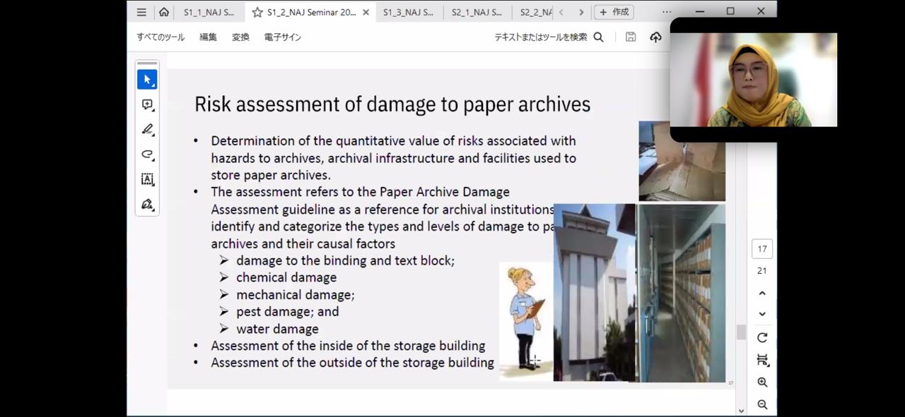 В 2024 году делегация Архива Президента Республики Казахстан совершила рабочую поездку в Национальный архив Японии в Токио, где ознакомилась с архивными хранилищами, современными технологиями реставрации, консервации и оцифровки документов. Профессиональное сотрудничество между архивами Казахстана и Японии продолжились в рамках участия в международном онлайн-семинаре. 31 января 2025 года сотрудники Архива Президента приняли участие в международном семинаре «Сохранение и консервация архивных документов на бумажных носителях», организованном Национальным архивом Японии. Программа семинара состояла из двух сессий. Первая сессия, «Сохранение архивных материалов в условиях жаркой и влажной среды», была посвящена рискам, связанным с изменениями условий хранения. С докладами по этой теме выступили директор Национального архивного центра № 3 Департамента государственных записей и архивов Вьетнама Тран Вьет Хоа, директор по обеспечению сохранности и защите архивов Национального архива Республики Индонезия Виви Диана Сари, а также главный архивариус Национального архива и действующий президент PARBICA Фиджи Тимочи Баленаивалю.
