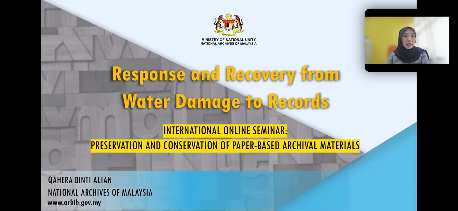 Во ходе второй сессии, «Реагирование и восстановление после повреждения архивных материалов водой», рассматривался опыт реставрации документов, пострадавших в результате наводнений. Эксперты из Малайзии и Тихоокеанского региона Кахера бинти Алиан и Брэндон Освальд представили рекомендации по спасению бумажных документов и составлению плана реагирования на стихийные бедствия. Также своими экспертными мнениями по данным темам поделились бывший доцент Национального института японской литературы, специалист по обеспечению сохранности архивов и бывший доцент Национального института японской литературы. Аоки Муцуми и Начальник отдела консервации Национального архива Японии Асаба Сахо. Со своей стороны, мы выражаем благодарность Национальному архиву Японии и всем спикерам семинара. Участие в мероприятии позволило сотрудникам Архива Президента получить ценные знания об опыте зарубежных коллег, а представленные доклады оставили неизгладимое впечатление.