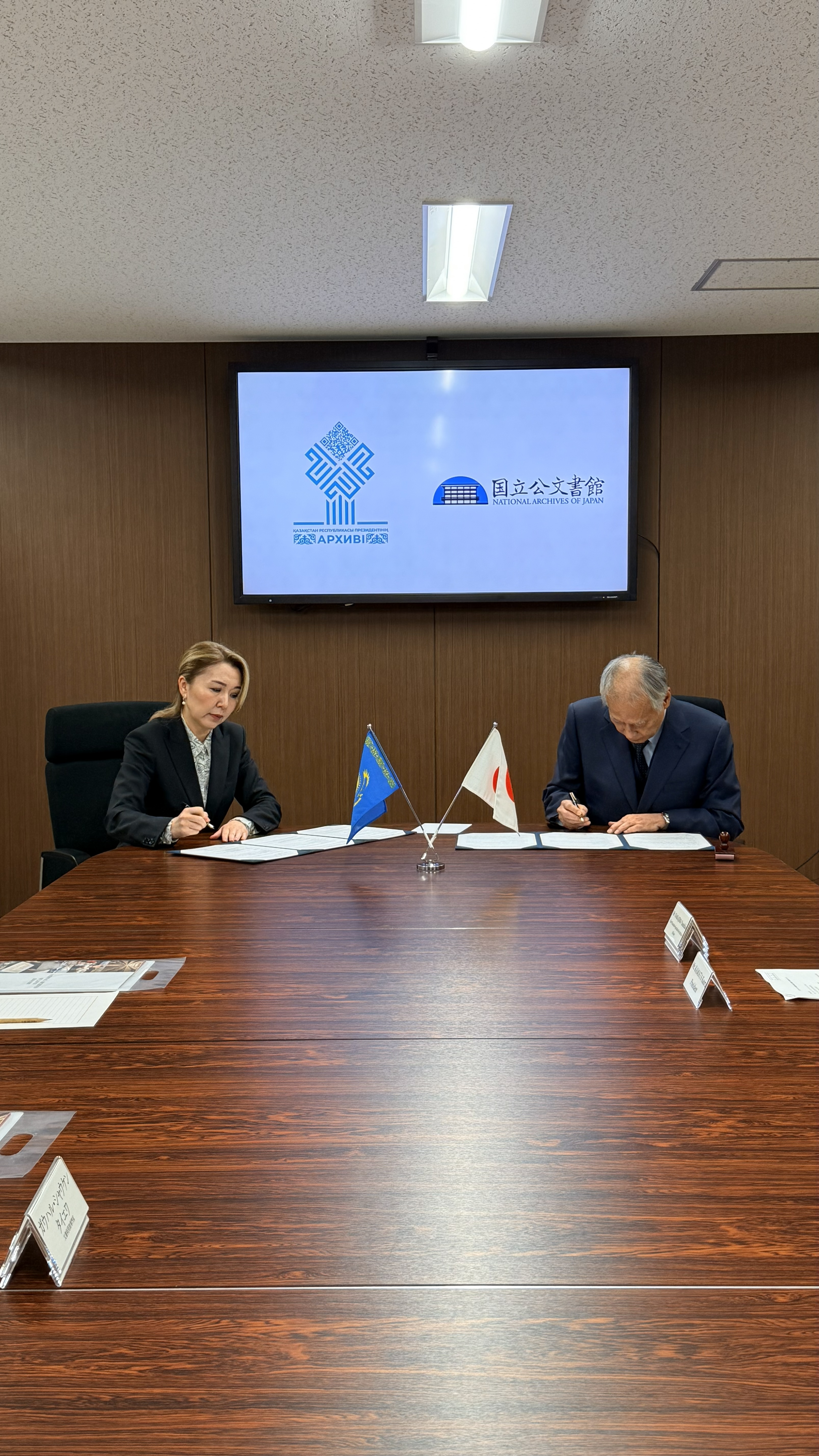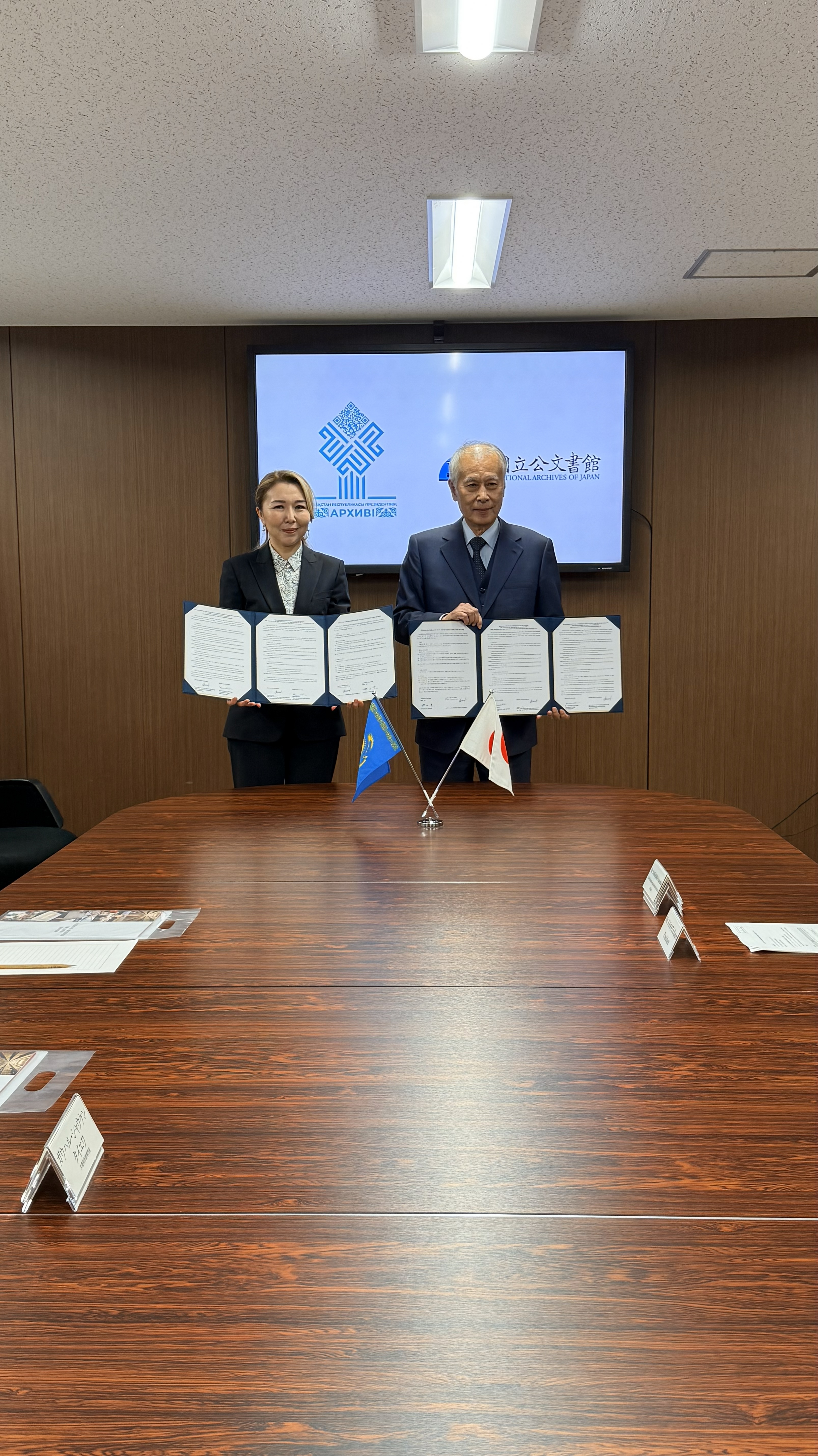 Меморандум подписали директор Архива Президента РК Алия Мустафина и Президент Национальных архивов Японии Каору Камата. Церемония подписания прошла в здании NAJ в Токио.