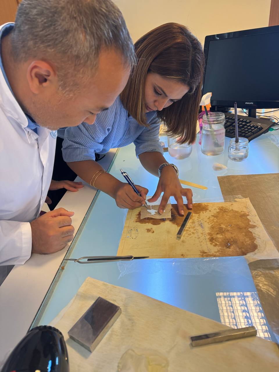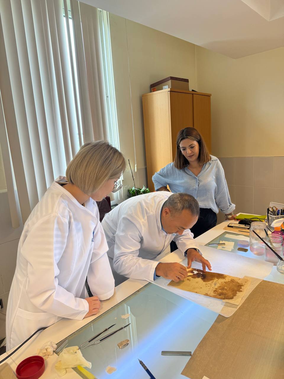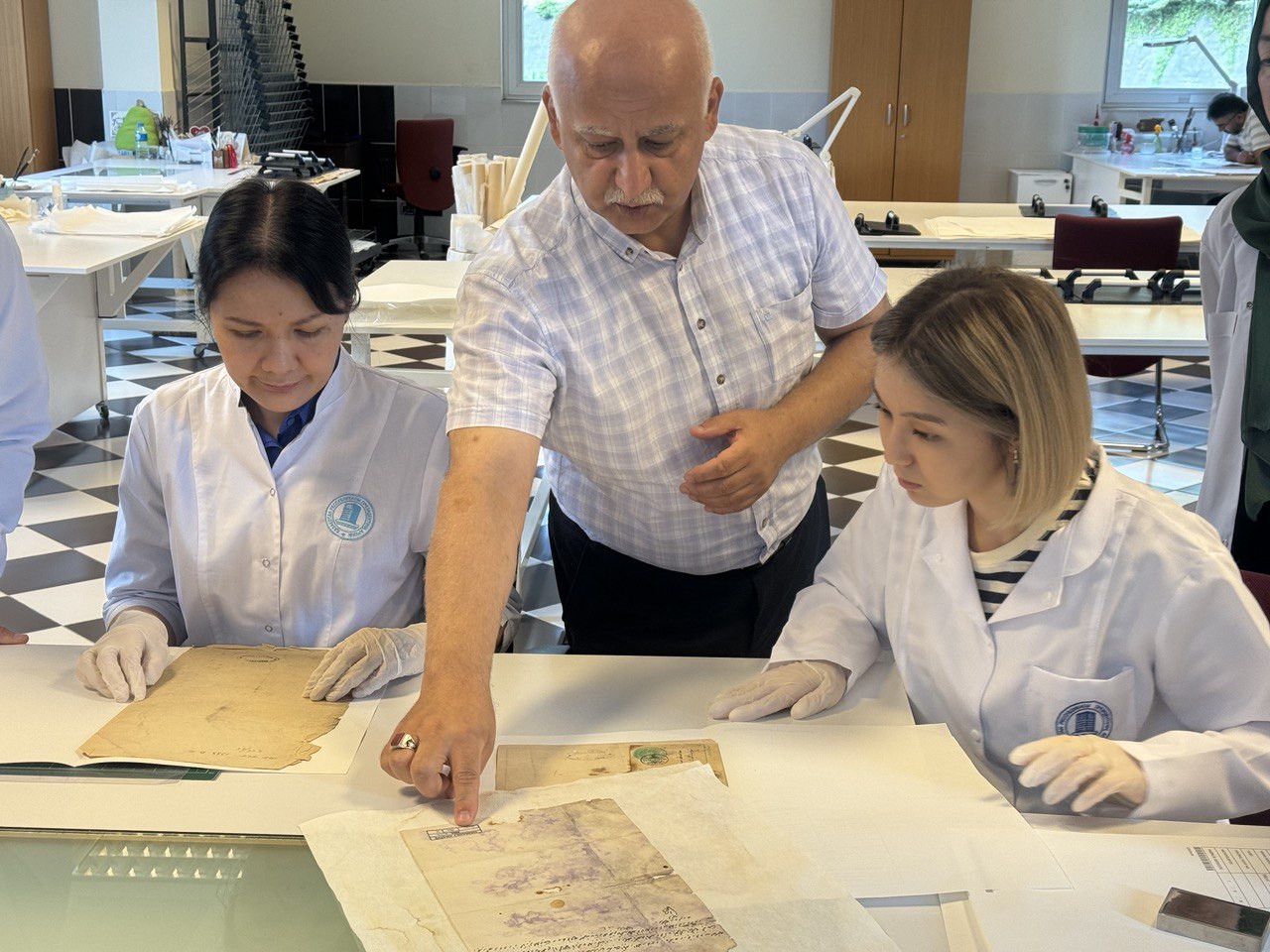 В этот же день казахстанские архивисты ознакомились с работой отдела реставрации Османского архива. Руководитель отдела А. Токез (Ali Toköz) рассказал об основных направлениях работы. Пригласил в центр реставрации документов. Специалисты-реставраторы центра показали, как они восстанавливают документы, поделились опытом по предотвращению дальнейшего распространения плесени на поврежденных участках отдельных документов.