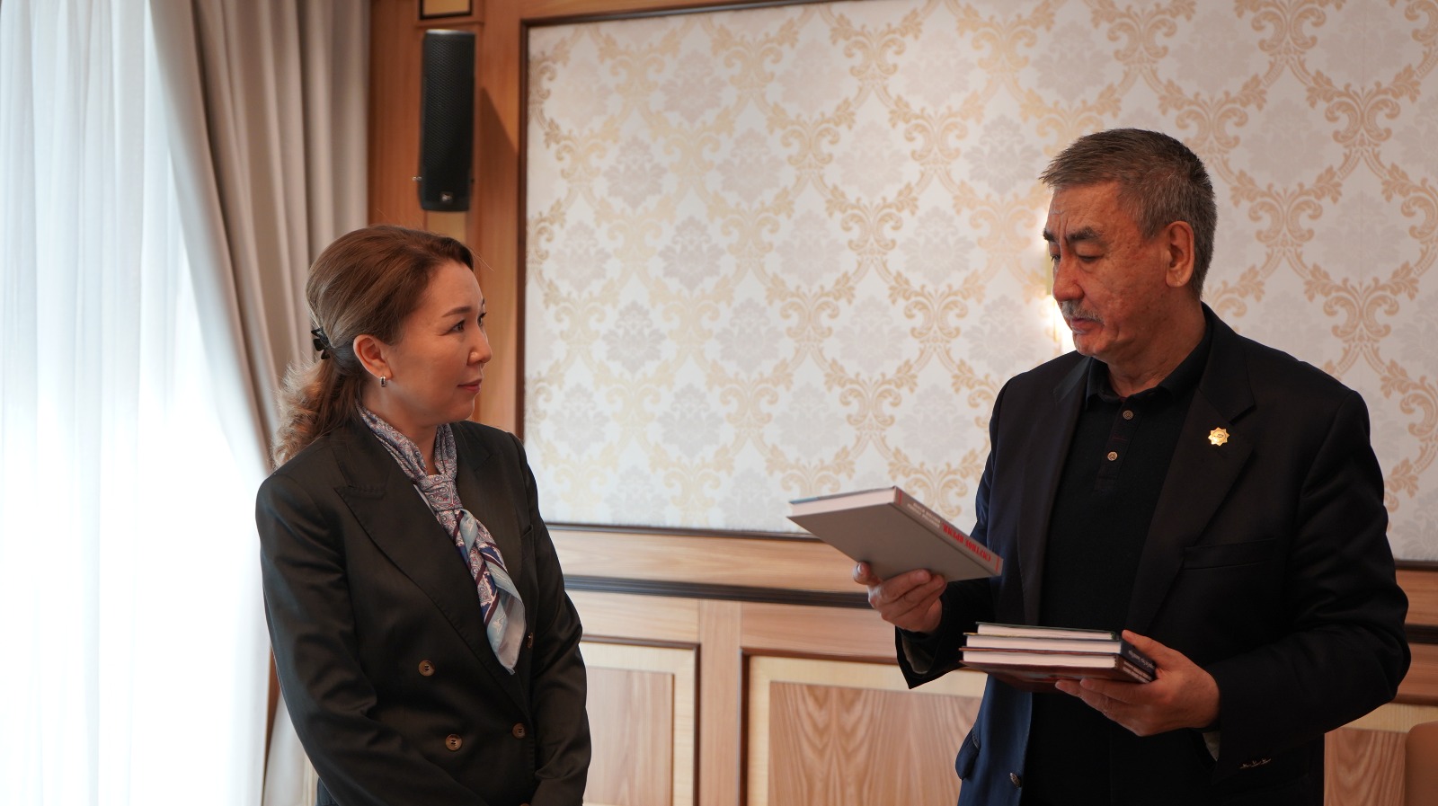 Первым на рассмотрение был вынесен фотоальбом «Ерлікке тағзым», подготовленный к 80-летию Победы в Великой Отечественной войне. В книге собраны редкие фотографии, письма и газетные вырезки, которые иллюстрируют вклад казахстанцев в общую Победу.