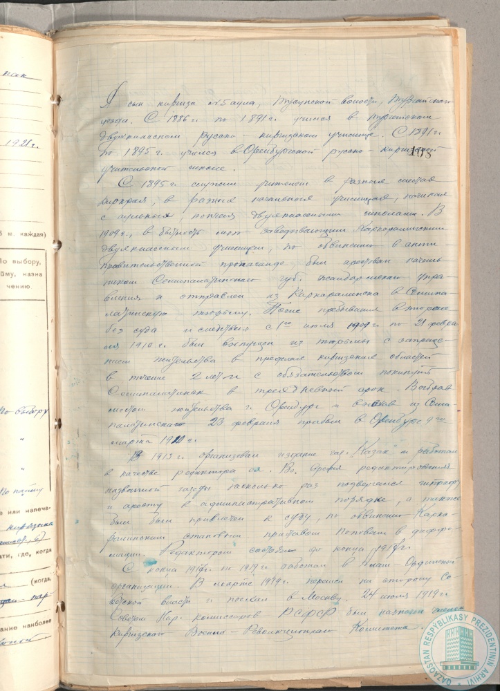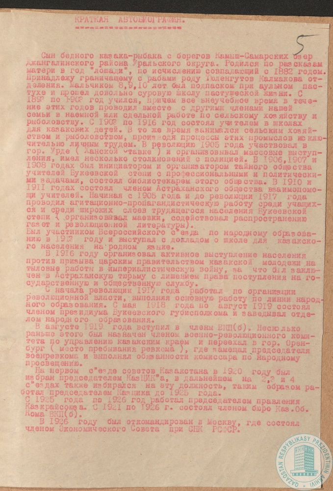 13. Автобиография А. Байтурсынова, председателя Киргизского (Казахского) научно-литературного совета при Наркомпросе, г. Оренбург, 4 июля 1924 г.