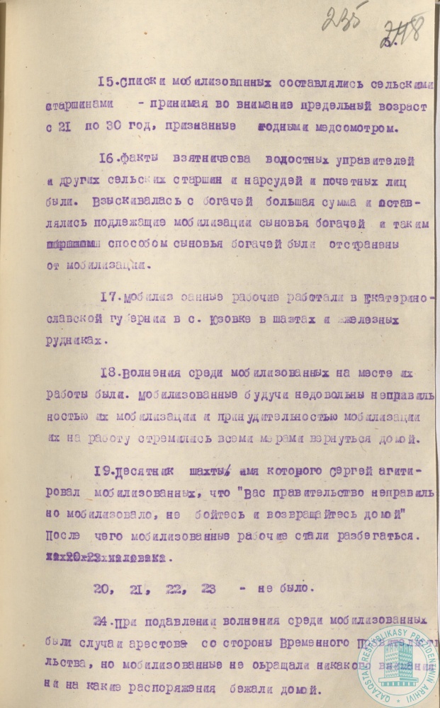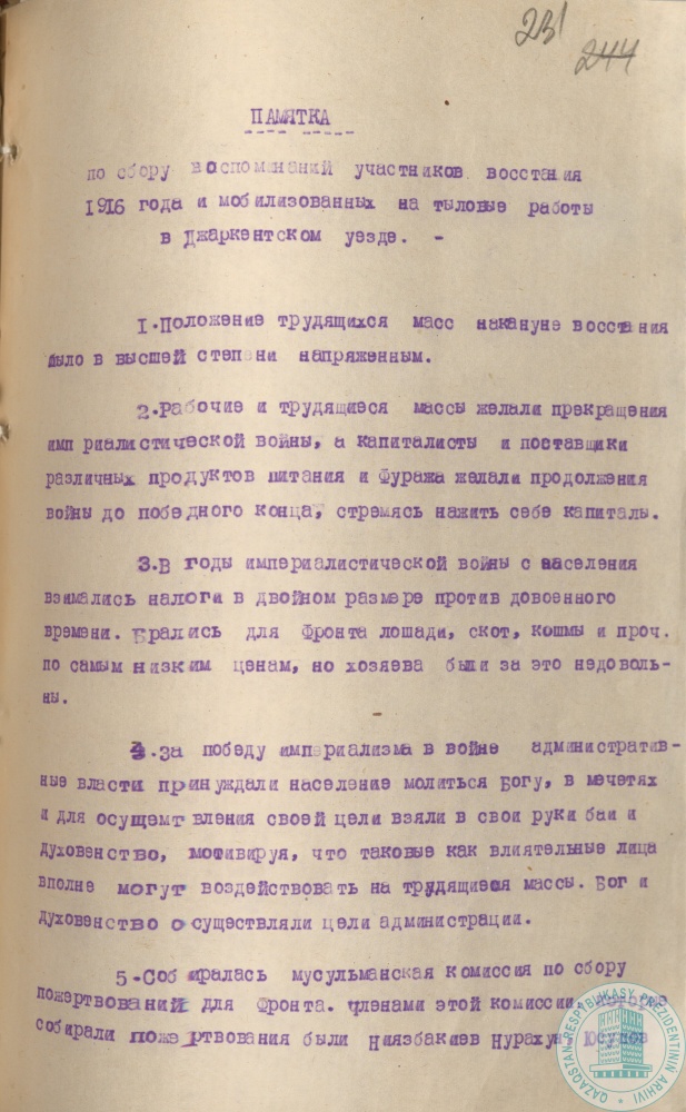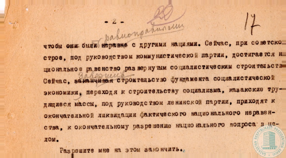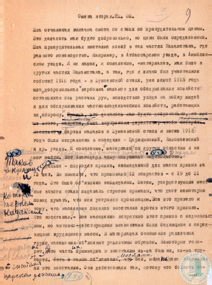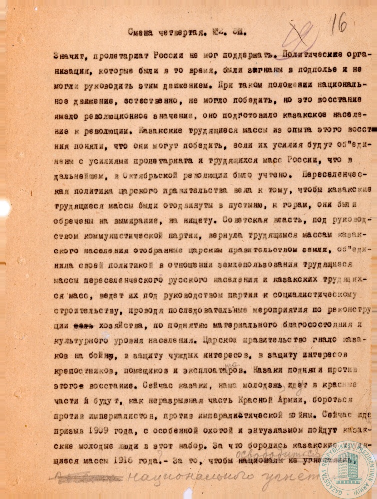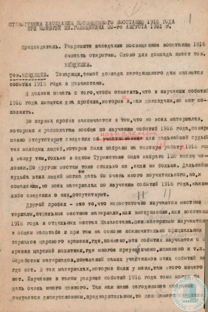 1. Доклад наркома просвещения КазАССР С. Мендешева к 15-летию национально-освободительного движения 1916 г., г. Алма-Ата, 20 августа 1931 г.