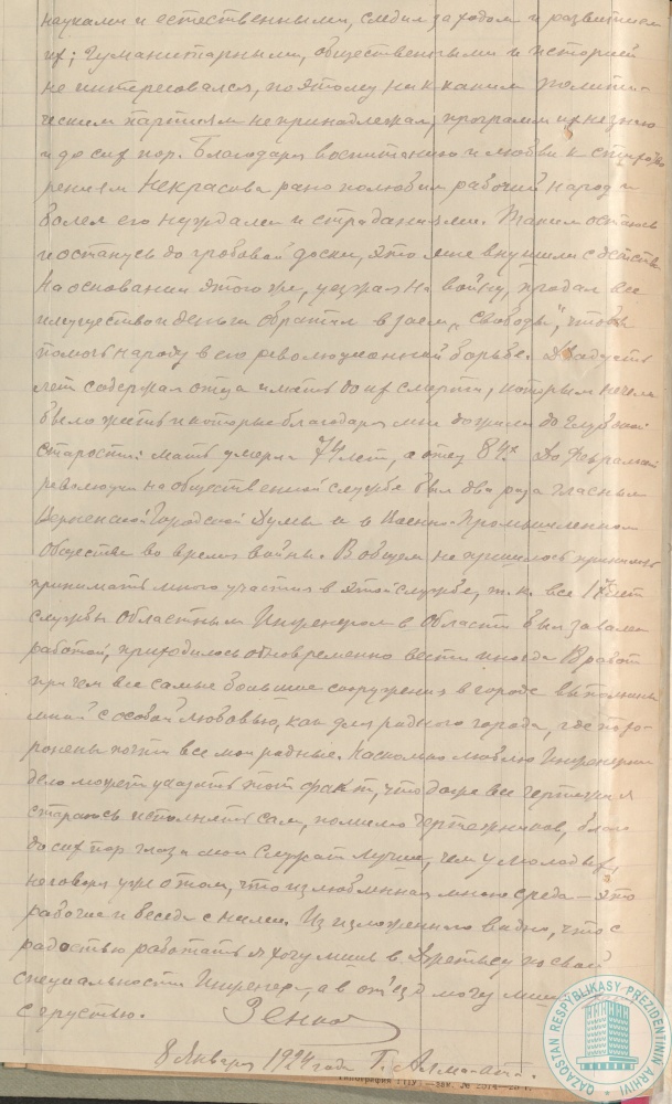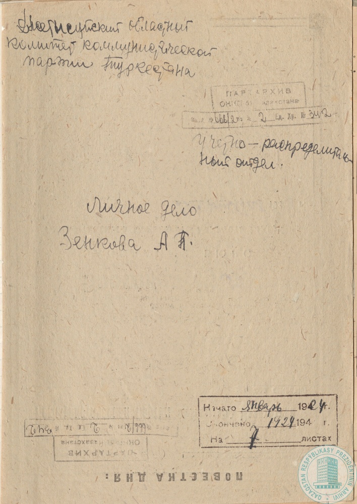 10. Автобиография инженера-строителя А. Зенкова, отложившаяся в Учетно-распределительном отделе Джетысуйского облкомитета Коммунистической партии Туркестана, г. Алма-Ата, 8 января 1924 г.