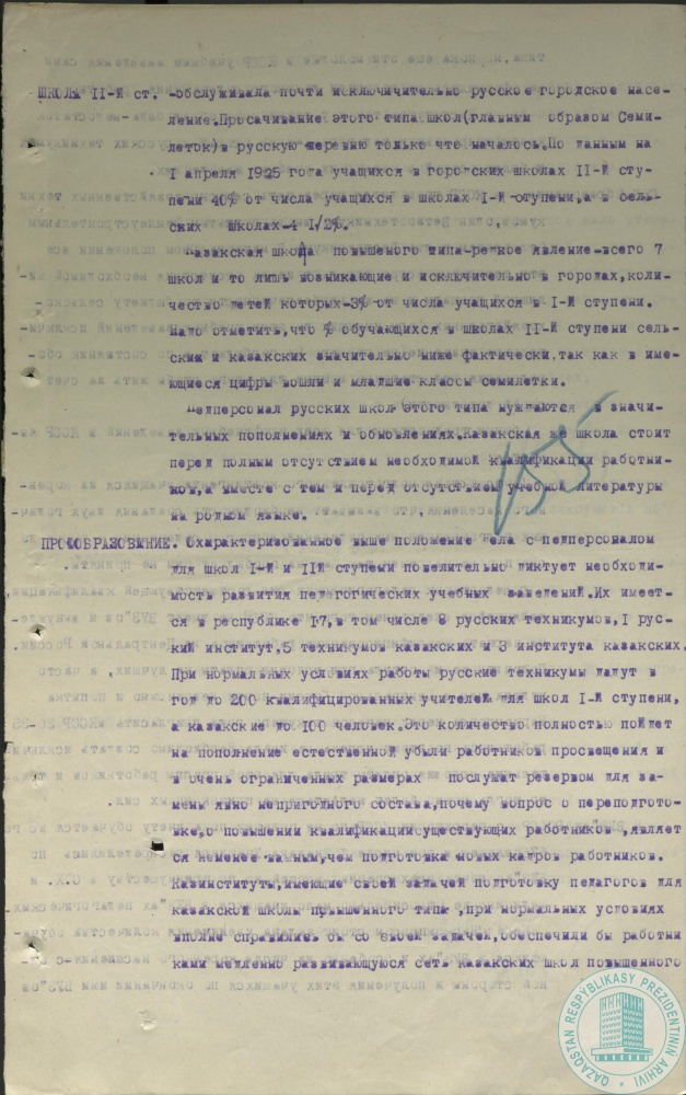 23. Письмо наркома просвещения КазАССР С. Садвакасова первому секретарю Казкрайкома ВКП (б) Ф. Голощекину о деятельности Наркомата просвещения, г. Кзыл-Орда, декабрь 1925 г.