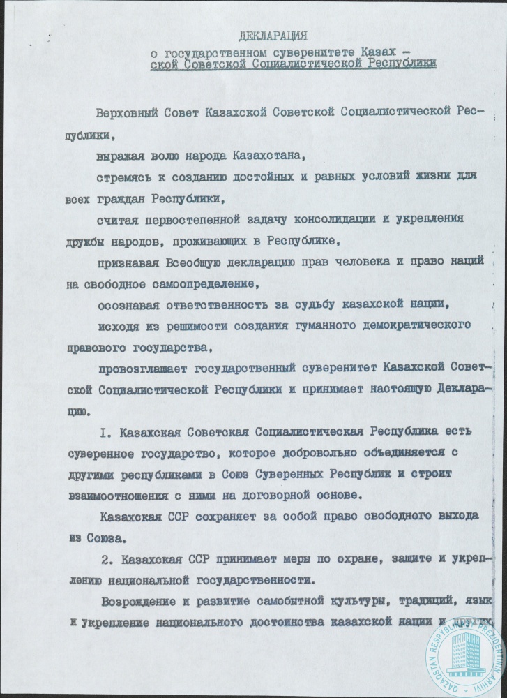 Архив Президента Республики Казахстан в 2024 г. отмечает свое 30-летие. Сегодня это крупнейшее архивное учреждение Казахстана. Если на момент создания в нем насчитывалось 555 тыс. единиц хранения, то в начале 2024 г. объем архивной информации составил более 1,5 млн. Почти треть века в фондах Архива собираются и бережно хранятся важнейшие документы новейшей истории Казахстана, отражающие деятельность новых политических институтов периода Независимости – Президента страны и его Администрации, а также государственных органов, непосредственно подчиненных и подотчетных Главе государства. Уникальную группу представляют документы архивных фондов, сформированных на базе предшественников Архива Президента – Центрального государственного архива новейшей истории, партийных архивов ЦК Компартии Казахстана и Алматинского областного комитета партии. В этих документах свидетельства тектонических изменений политического, экономического, социокультурного контекста советской эпохи, начиная с 1917 г. Обретение независимости республикой способствовало усилению общественного интереса к истории Казахстана. На этом фоне актуализировались задачи выявления особо ценных и уникальных документов, входящих в состав Национального архивного фонда, находящихся на хранении в Архиве Президента. В настоящее время здесь хранится более 120 тыс. особо ценных документов. Среди них документы по истории голода 1920–1930-х гг., массовых репрессий 1930-х гг., депортаций, исторических личностей, в советское время считавшихся «врагами народа», и многие другие. Сотрудники Архива работают над выявлением наиболее информативных документов, отражающих самую суть, характерность исторических процессов. Согласно Закону Республики Казахстан «О Национальном архивном фонде и архивах», эти документы относятся к категории особо ценных как имеющие непреходящую историко-культурную и научную ценность, представляющие особую важность для общества и государства. Это обусловило поступательное расширение видового и тематического состава Перечня особо ценных документов Архива. Подобное расширение стало возможным также в результате рассекречивания документов фондов партийных органов («особые папки» и др.). Предлагаемый вниманию читателей Альбом – первое издание Архива Президента, в котором представлены репринты (сканированные копии документов). Посредством такого издания читателю предоставляется возможность увидеть «вживую» документальный источник, рассмотреть его внешние особенности. Альбом содержит 70 особо ценных документов, раскрывающих события отечественной истории на разных ее этапах. Документальная летопись начинается с воспоминаний очевидцев и участников народно-освободительного восстания 1916 г. Затем следуют документы советского периода, повествующие, в том числе, о трагических событиях голода и политических репрессий, социальных и этнических депортациях, о подвиге народа в годы Великой Отечественной войны, развитии народного хозяйства и культуры. Завершается подборка одним из важнейших документов современной истории Казахстана – Декларацией о государственном суверенитете от 25 октября 1990 г. В издание включены в основном подлинные документы, большая часть которых публикуется без купюр. Отдельные документы, ввиду их значительного объема (многостра