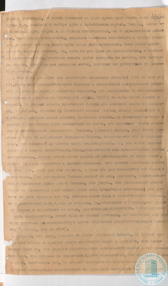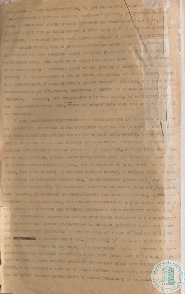 14. Письмо члена Кир(Каз)военревкома и ВЦИК А. Байтурсынова председателю Совнаркома РСФСР В. Ленину о преодолении недоверия между представителями центра и населением, г. Москва, 17 мая 1920 г.