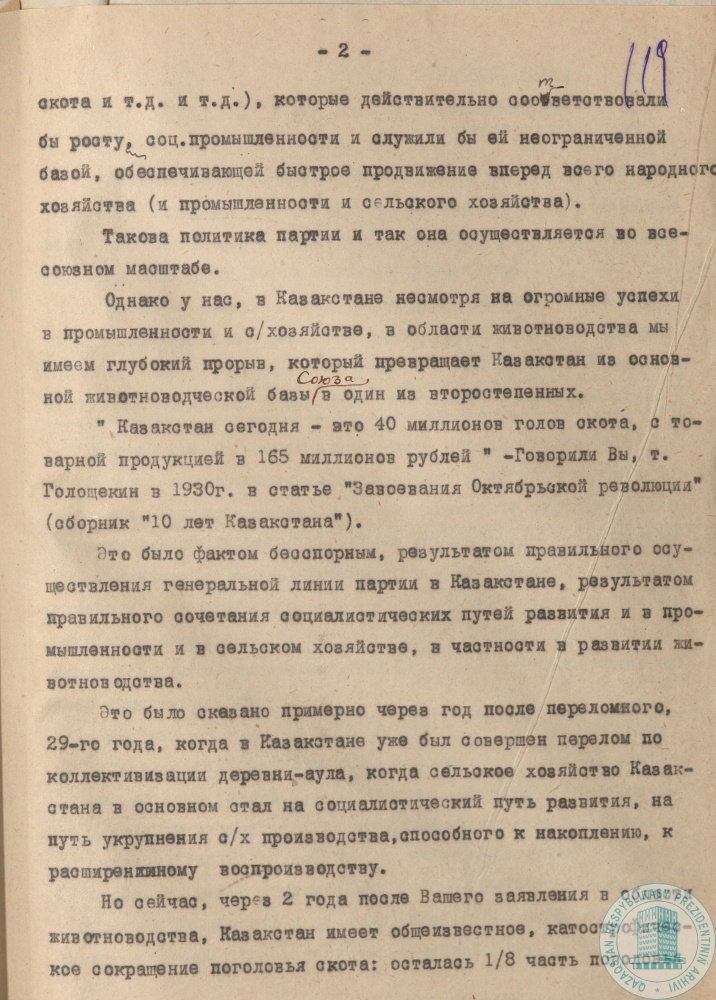 34. «Письмо шести» Г. Искакова, И. Кабулова, Ж. Арстанова, Б. Айбасова, Г. Тогжанова, У. Джандосова Генеральному секретарю ЦК ВКП (б) И. Сталину о недостатках и допущенных ошибках Казкрайкома ВКП (б) в развитии животноводства, коллективизации кочевых и полукочевых хозяйств, г. Алма-Ата, 24 февраля 1933 г.