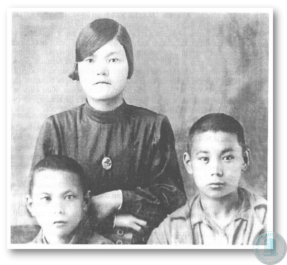 Дети Б. Майлина. Слева направо: сыновья Эдиль (7 лет) и Мереке (11 лет), дочь Разия (13 лет). Детский дом, г. Семипалатинск, 1939 г.