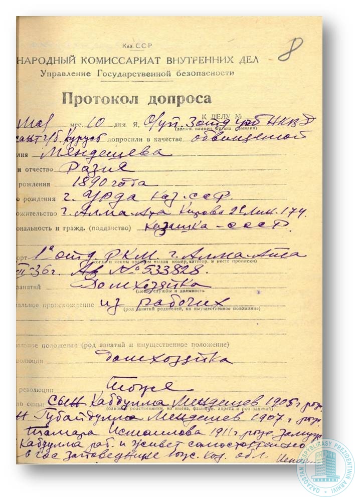 АП РК. Ф.352. Оп.1 (г. Алматы). Д. 4339. Т.1. Л.8.